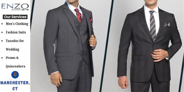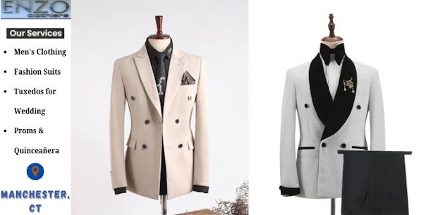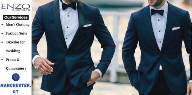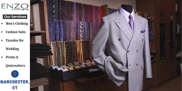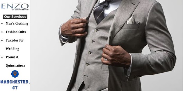 Enzo Clothiers is a premier men’s clothing store in Manchester, Connecticut, specializing in business attire, formalwear, and fashion suits for all occasions. Whether you’re preparing for a wedding, prom, or quinceañera, we offer both retail and rental options to suit your needs. Our collection includes tuxedos, designer suits, and accessories that combine elegance with modern style. We also provide expert custom tailoring to ensure the perfect fit. Visit Enzo Clothiers for timeless style and personalized service. “ We do Custom Tailoring as well “