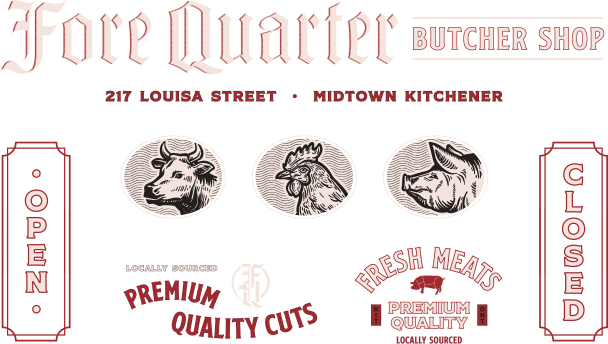 ForeQuarter Butcher Shop in Kitchener is your local destination for premium, locally sourced meats. Our expert butchers specialize in a wide range of high-quality products, including beef, chicken, lamb, and specialty sausages. We pride ourselves on our commitment to freshness and exceptional customer service. Whether you’re looking for classic cuts or gourmet options, we have something for every meat lover. Visit us for friendly advice on cooking and preparation, and enjoy our seasonal specials and unique offerings. Conveniently located in Kitchener, we serve the surrounding communities with passion and dedication. Order online for easy curbside pickup or stop by to experience the best in local butchery.