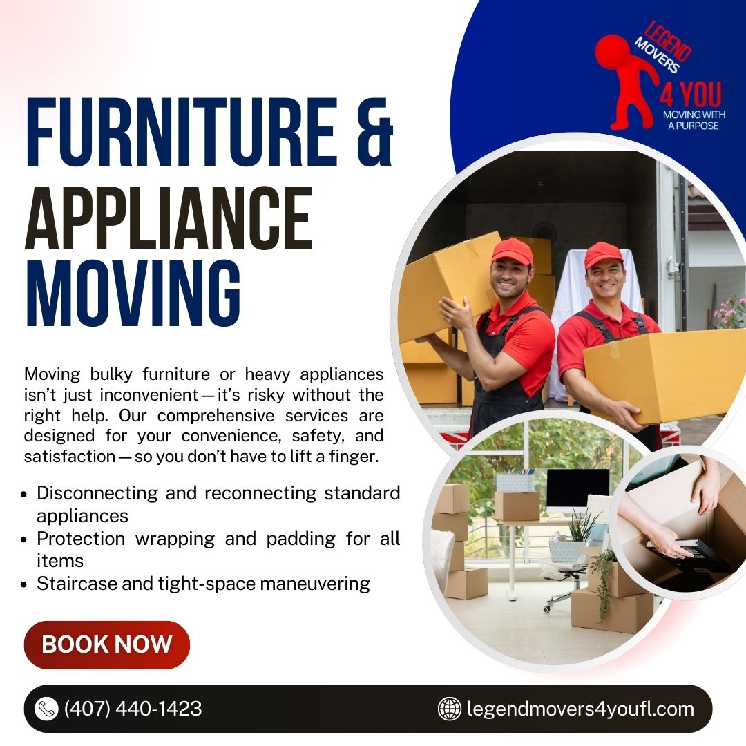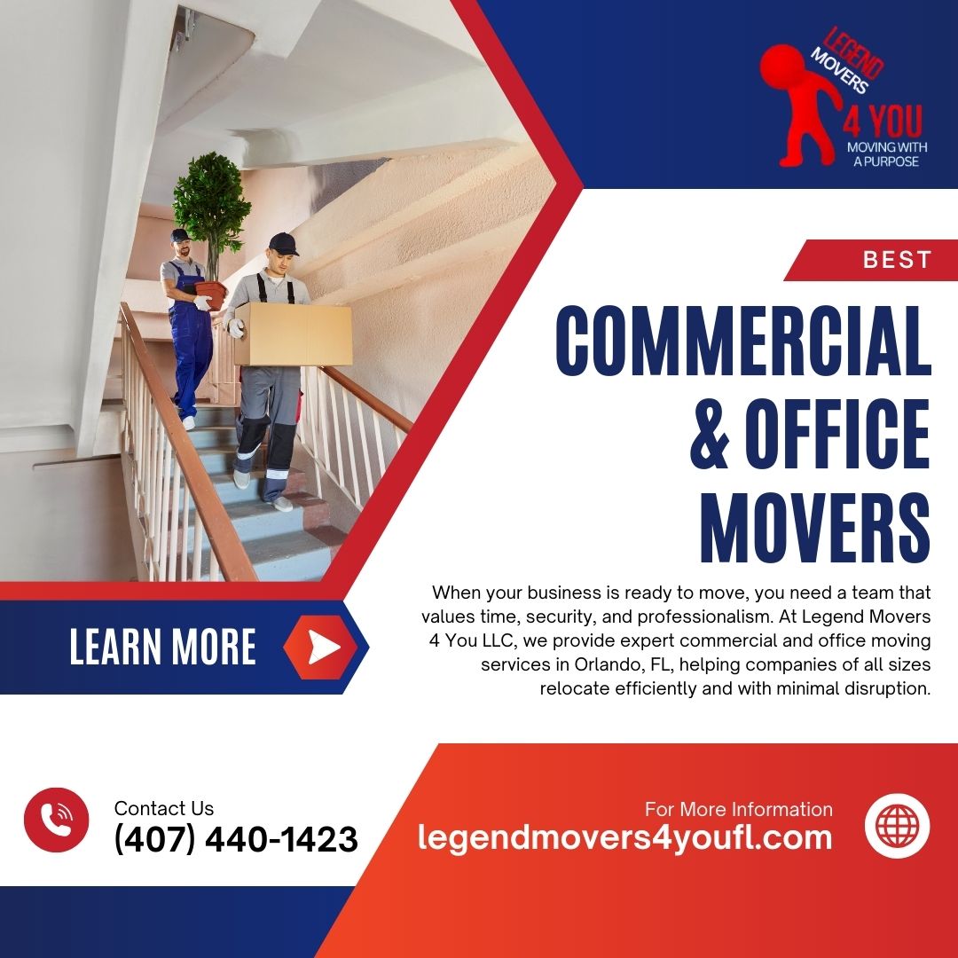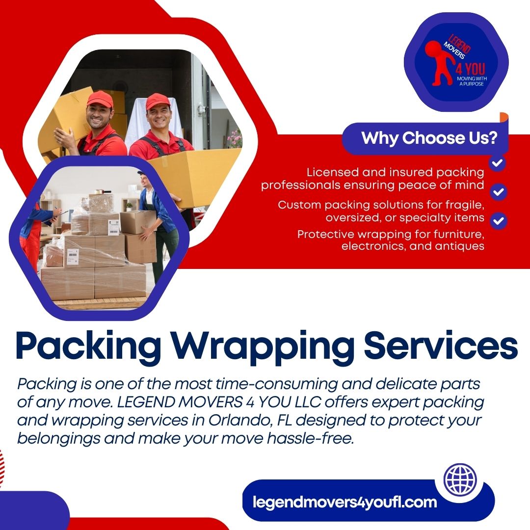 Legend Movers 4 You LLC – Moving With a Purpose is a trusted Orlando moving company serving residential and commercial clients with 20+ years of experience. Based in Orlando, Florida, we provide professional local and long-distance moving services throughout Central Florida. Our experienced movers specialize in apartment moves, home relocations, and office moving with careful furniture protection and efficient loading techniques. Operating 24 hours a day, 7 days a week, we are committed to reliability, professionalism, and delivering smooth, stress-free moving experiences for every client we serve.
